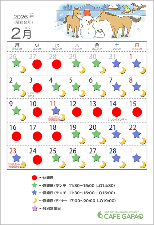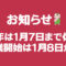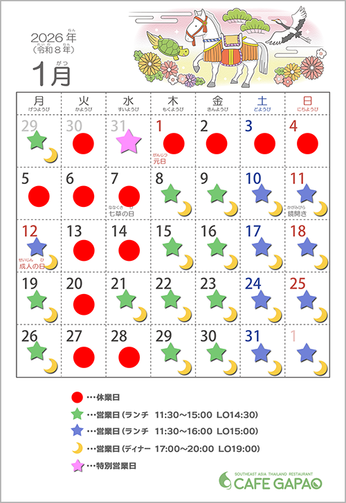 1/1(木)~7(水)は休業 営業は1/8(木)から