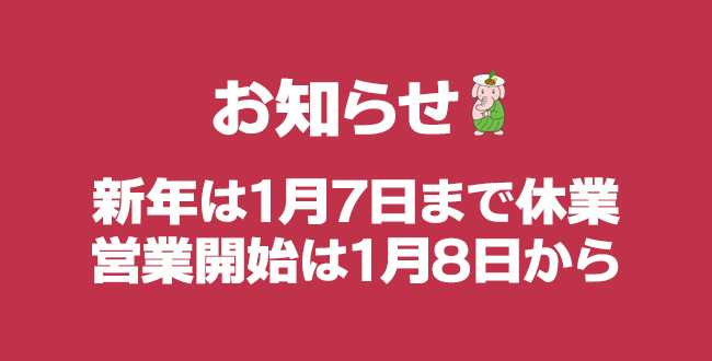 1/1(木)~7(水)は休業 営業は1/8(木)から