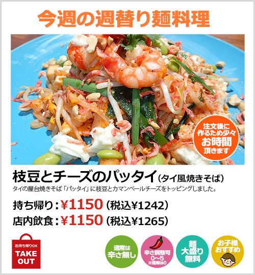 「枝豆とチーズのパッタイ」「カフェガパオのパッタイ」