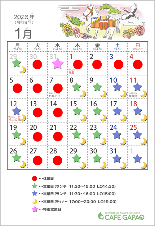今月の営業予定