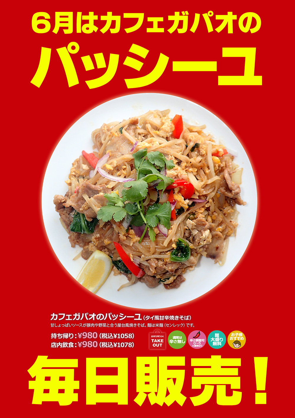 6月は「カフェガパオのパッシーユ」を毎日販売します!